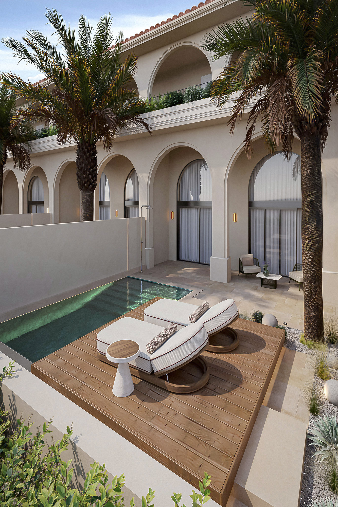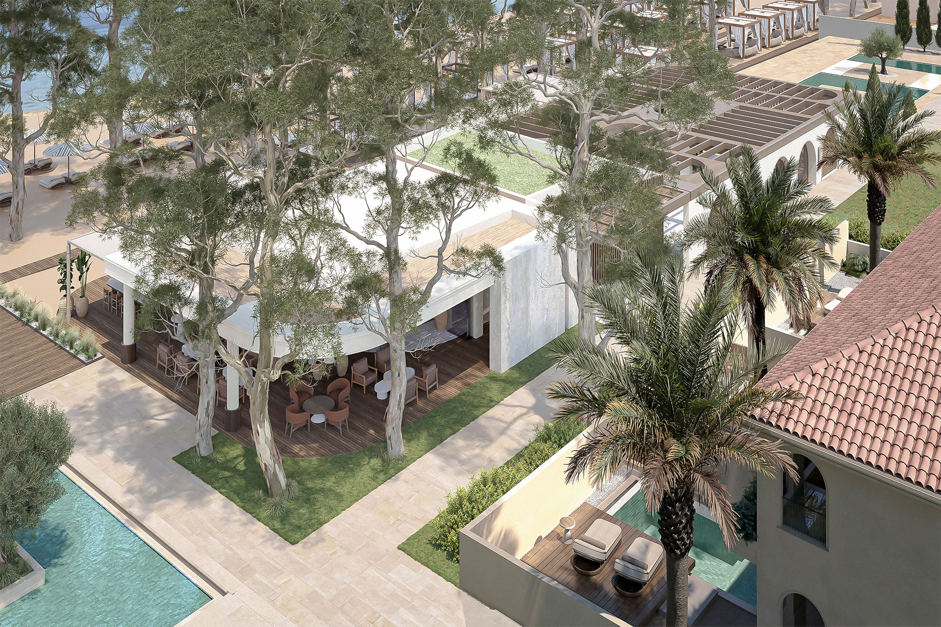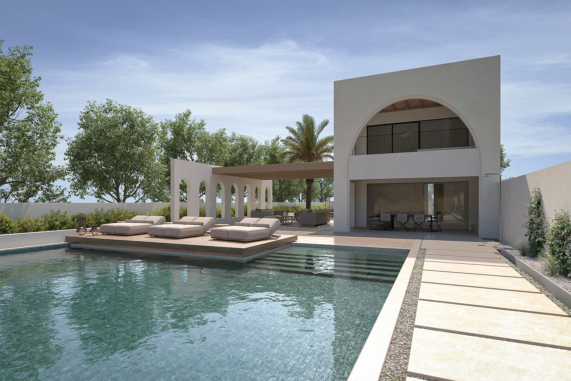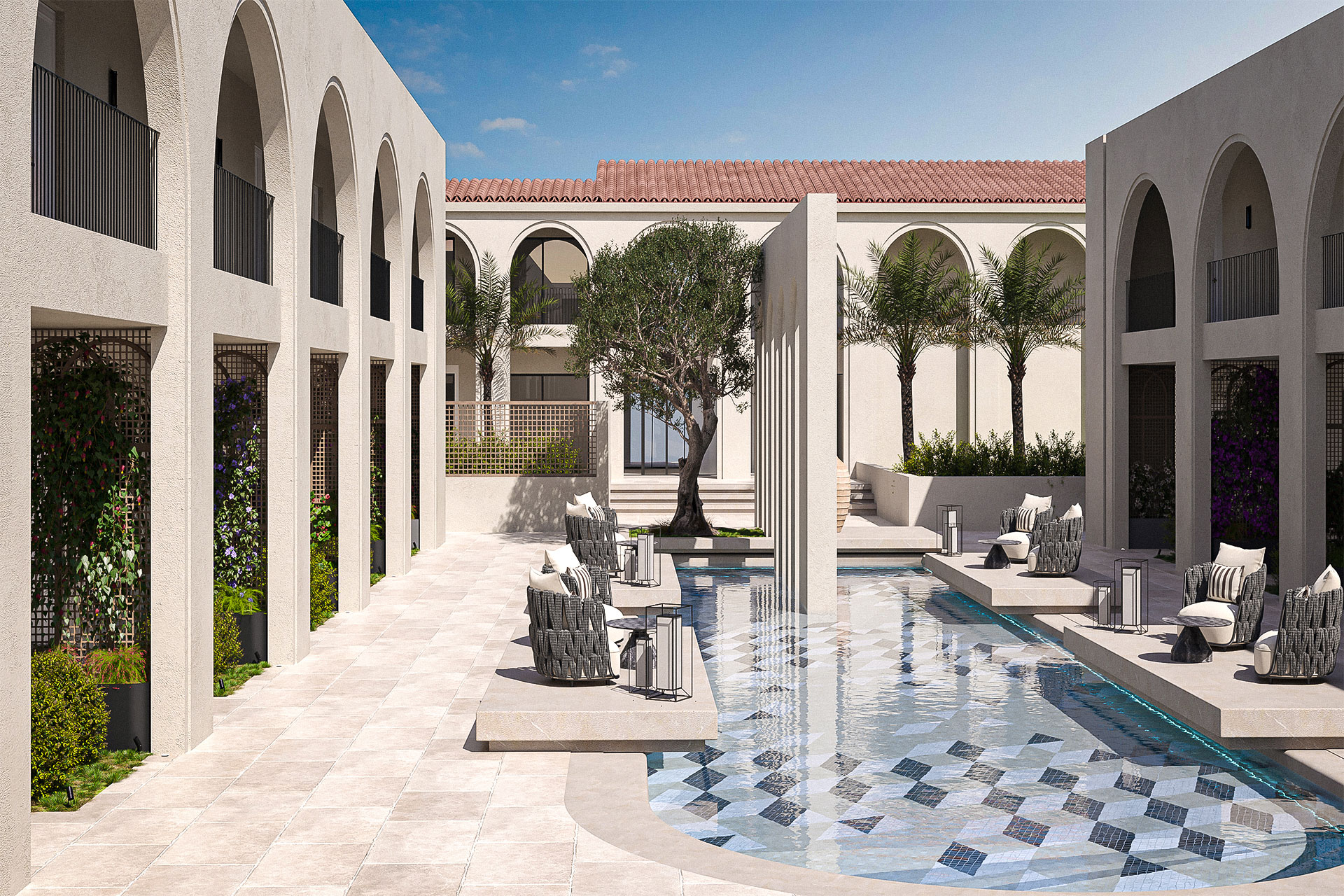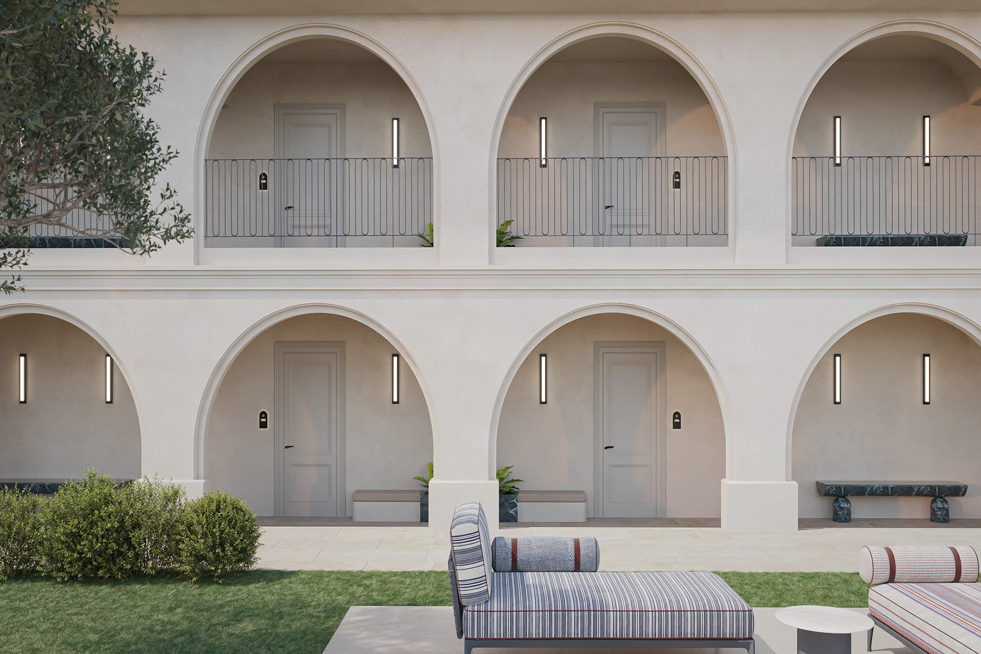 Designed and constructed by our team, the concept pays homage to Corfu’s neoclassical and Venetian heritage,reflecting the island’s timeless elegance through grand colonnades, symmetrical façades, and lush inner courtyards that echo its noble past