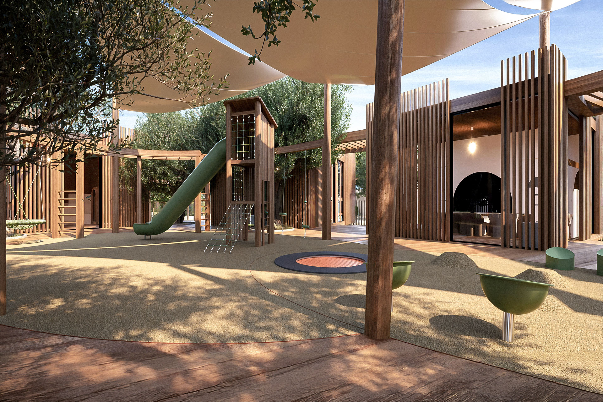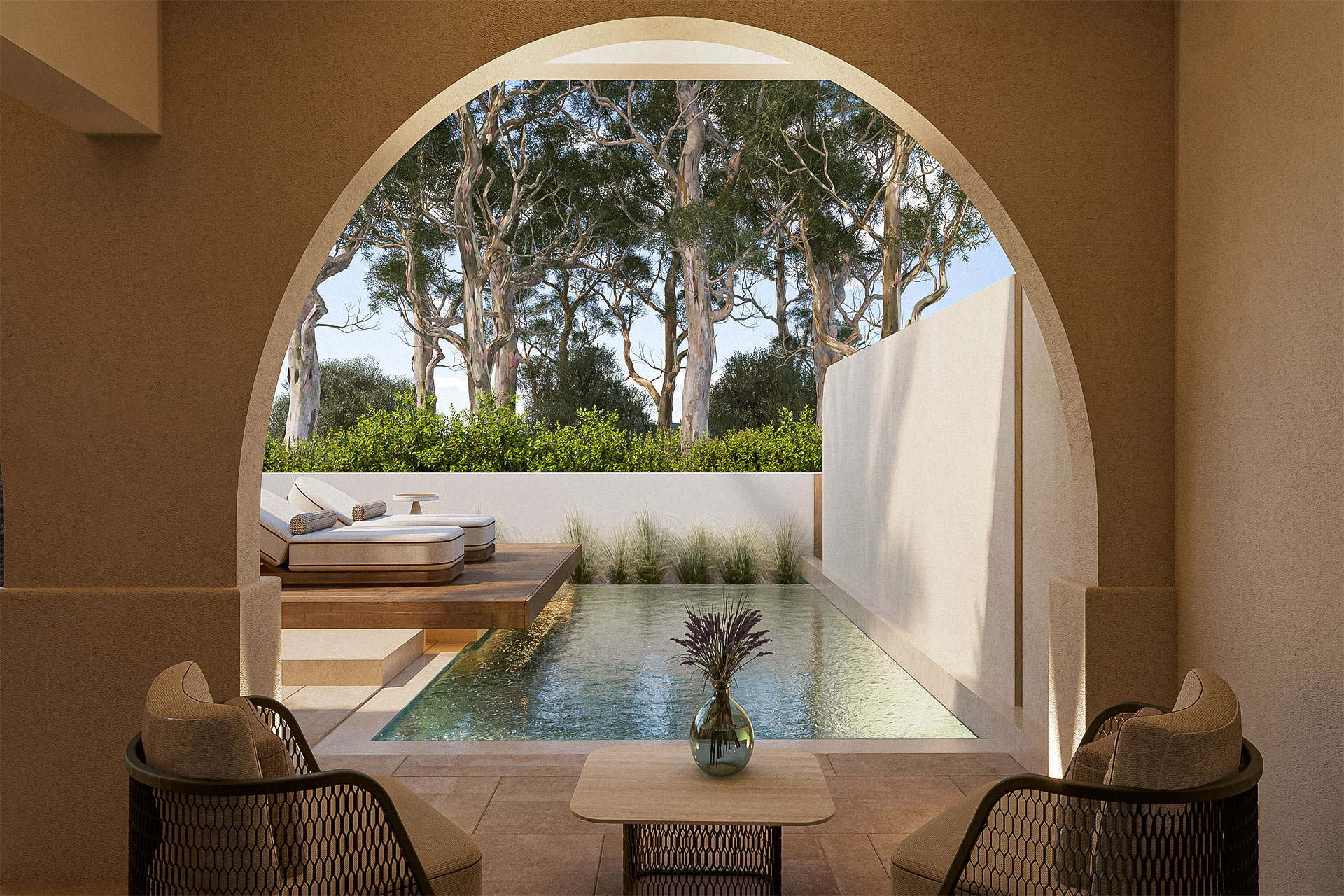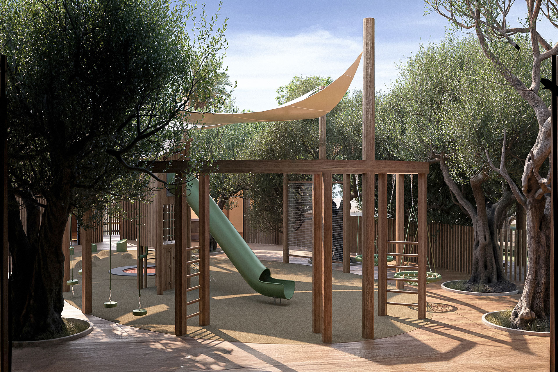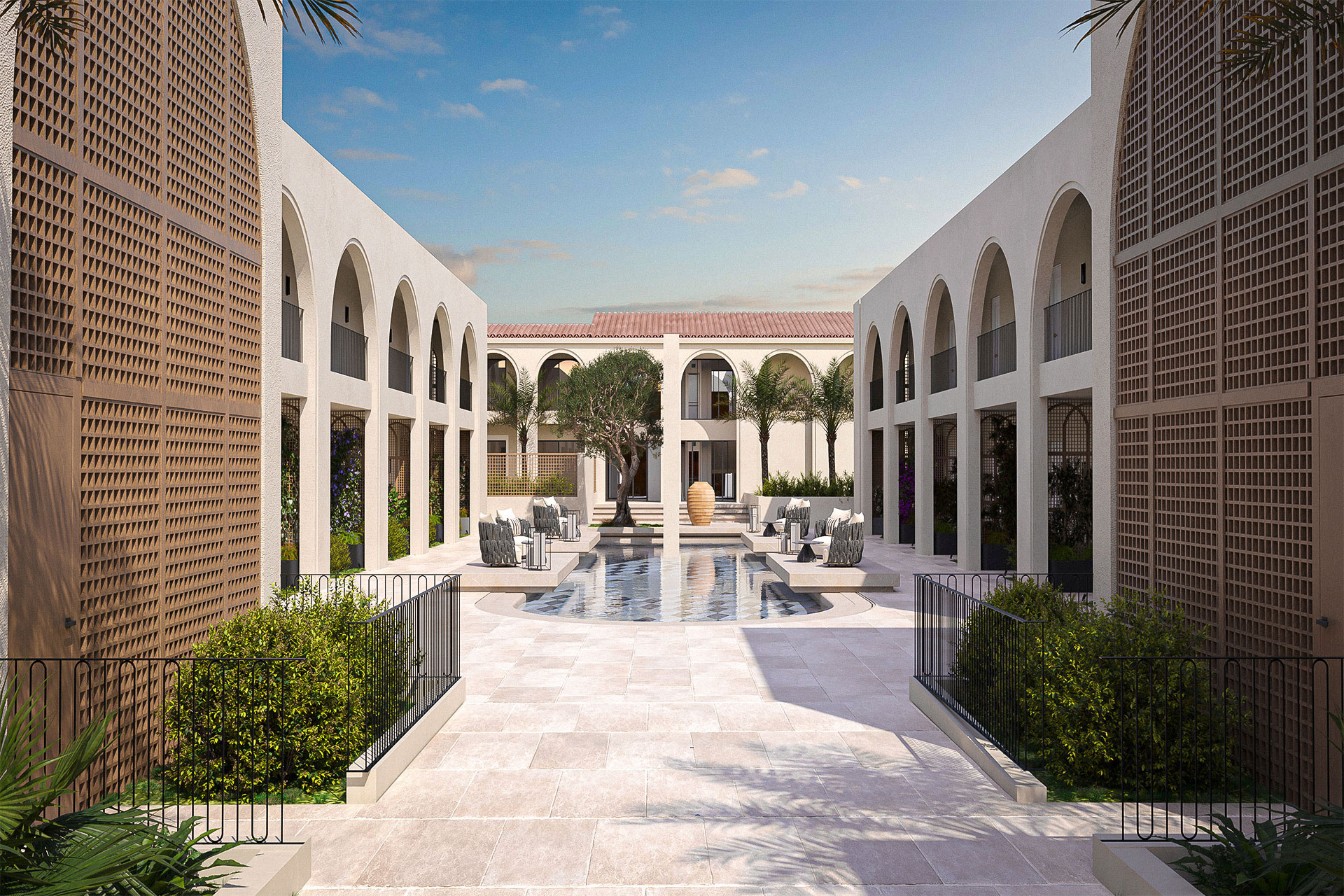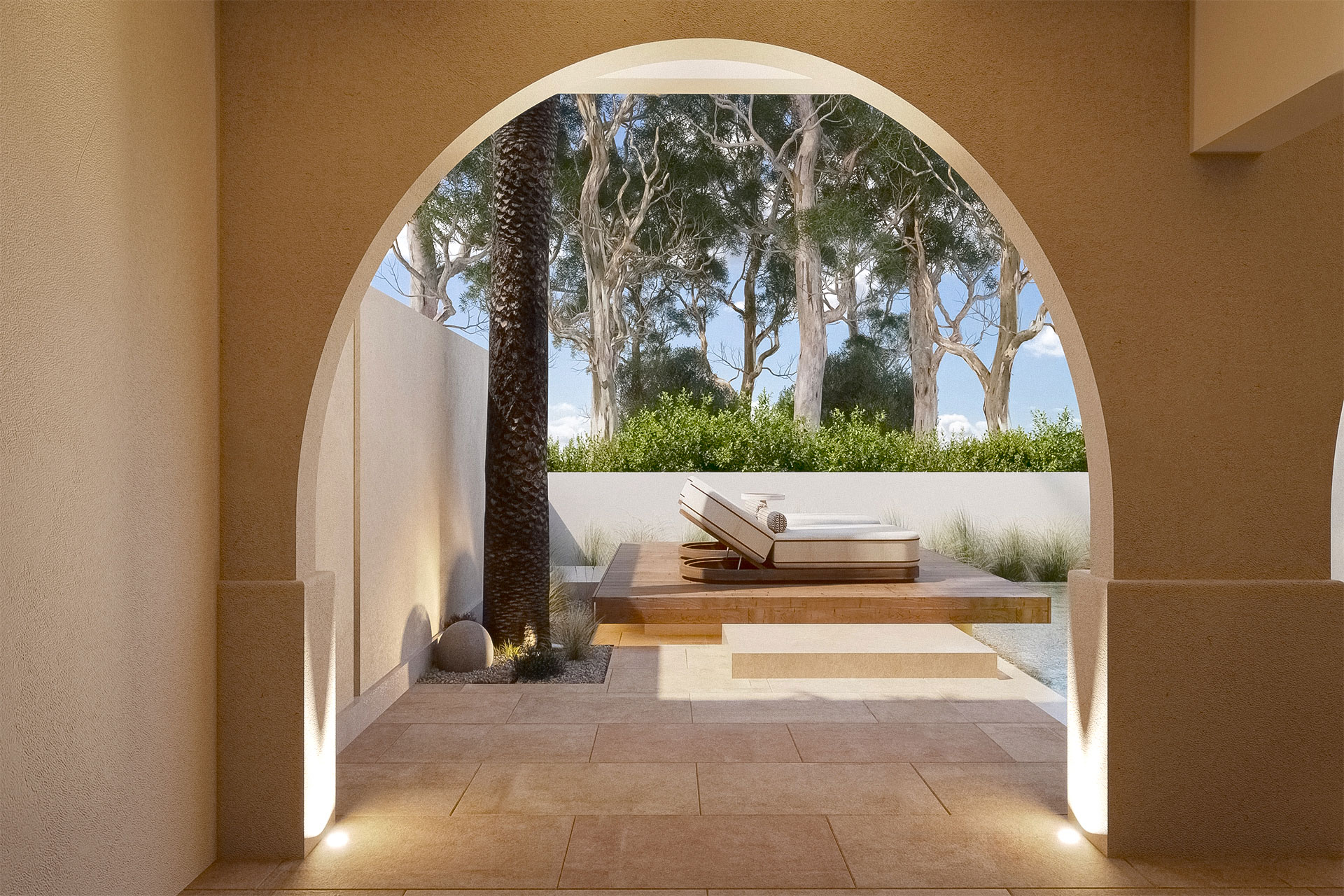 Designed and constructed by our team, the concept pays homage to Corfu’s neoclassical and Venetian heritage,reflecting the island’s timeless elegance through grand colonnades, symmetrical façades, and lush inner courtyards that echo its noble past